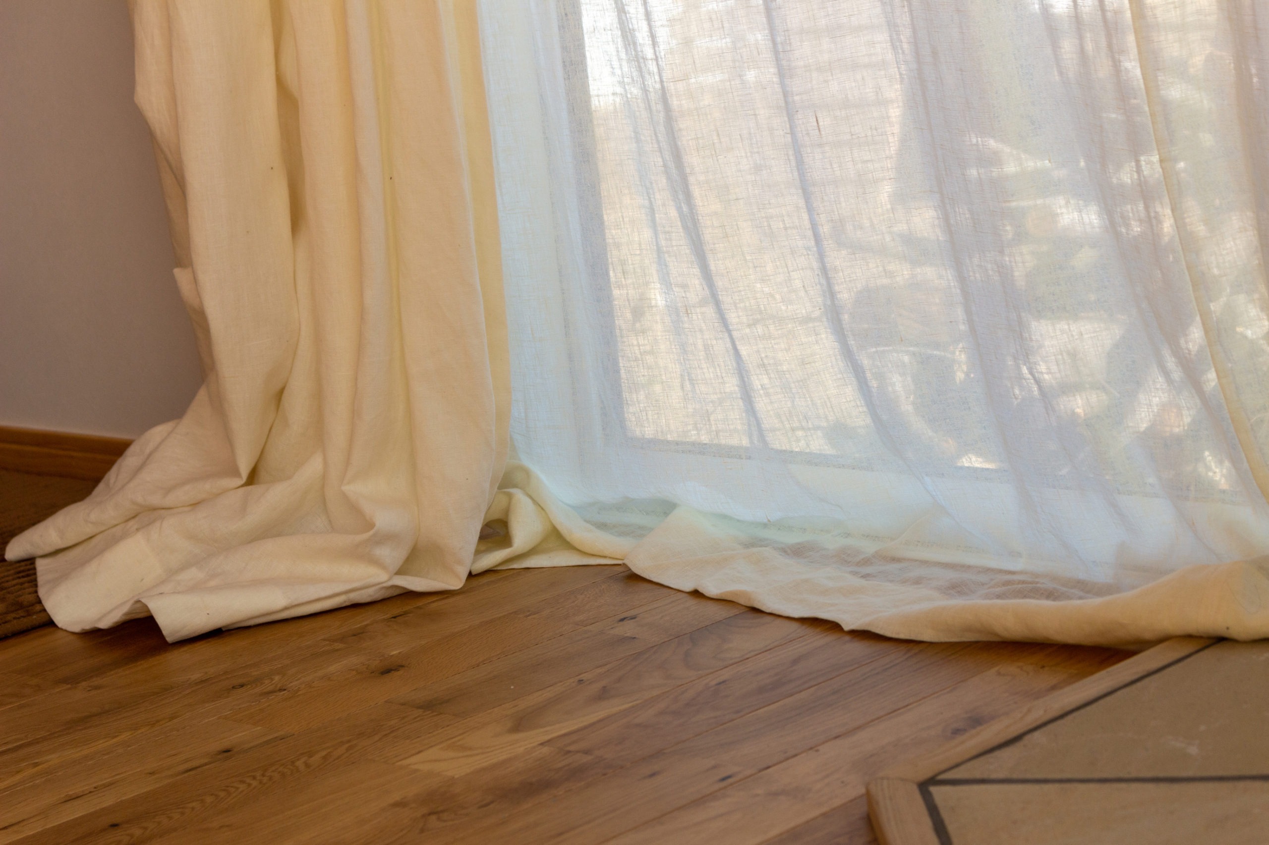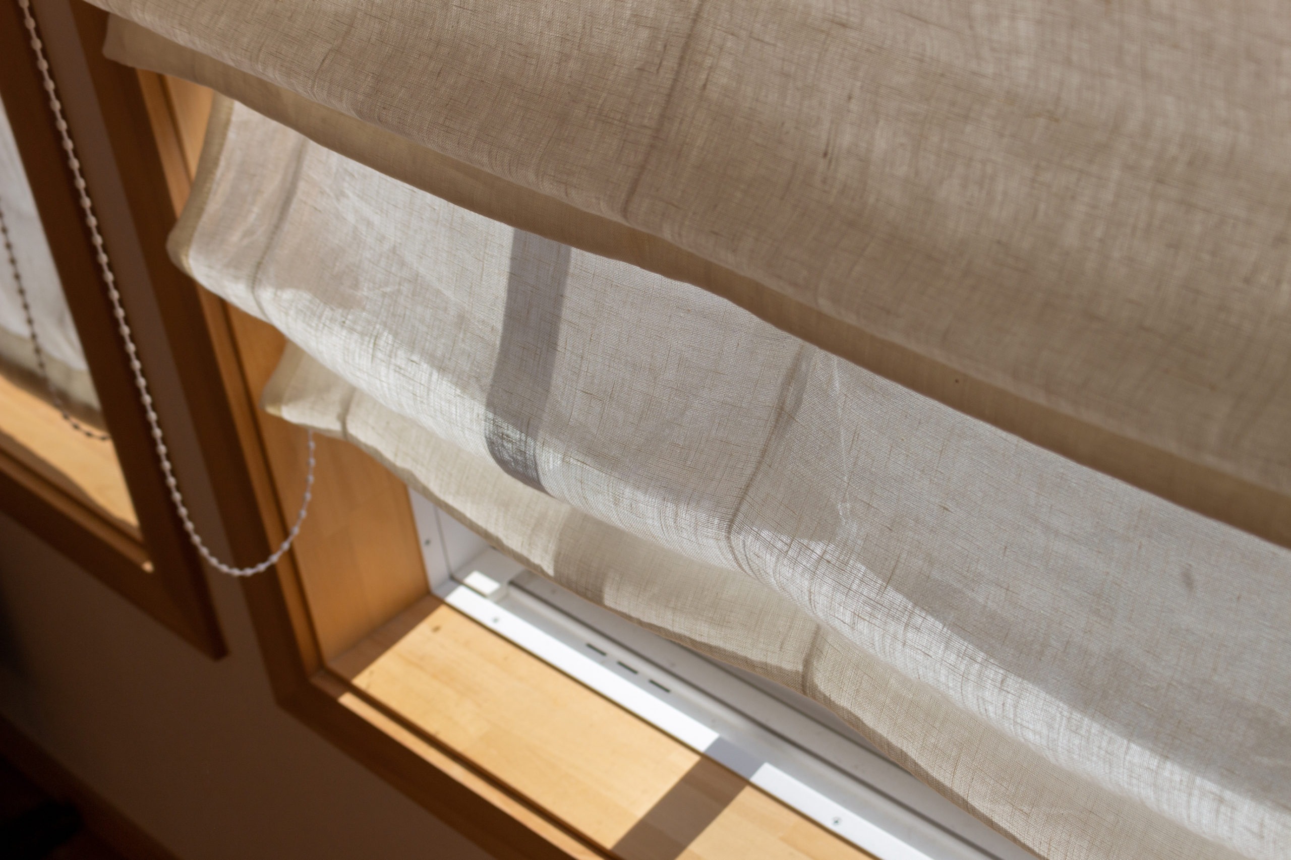 リネンの透け感がちょうどよく、外から見えすぎることもなく安心して使えます。