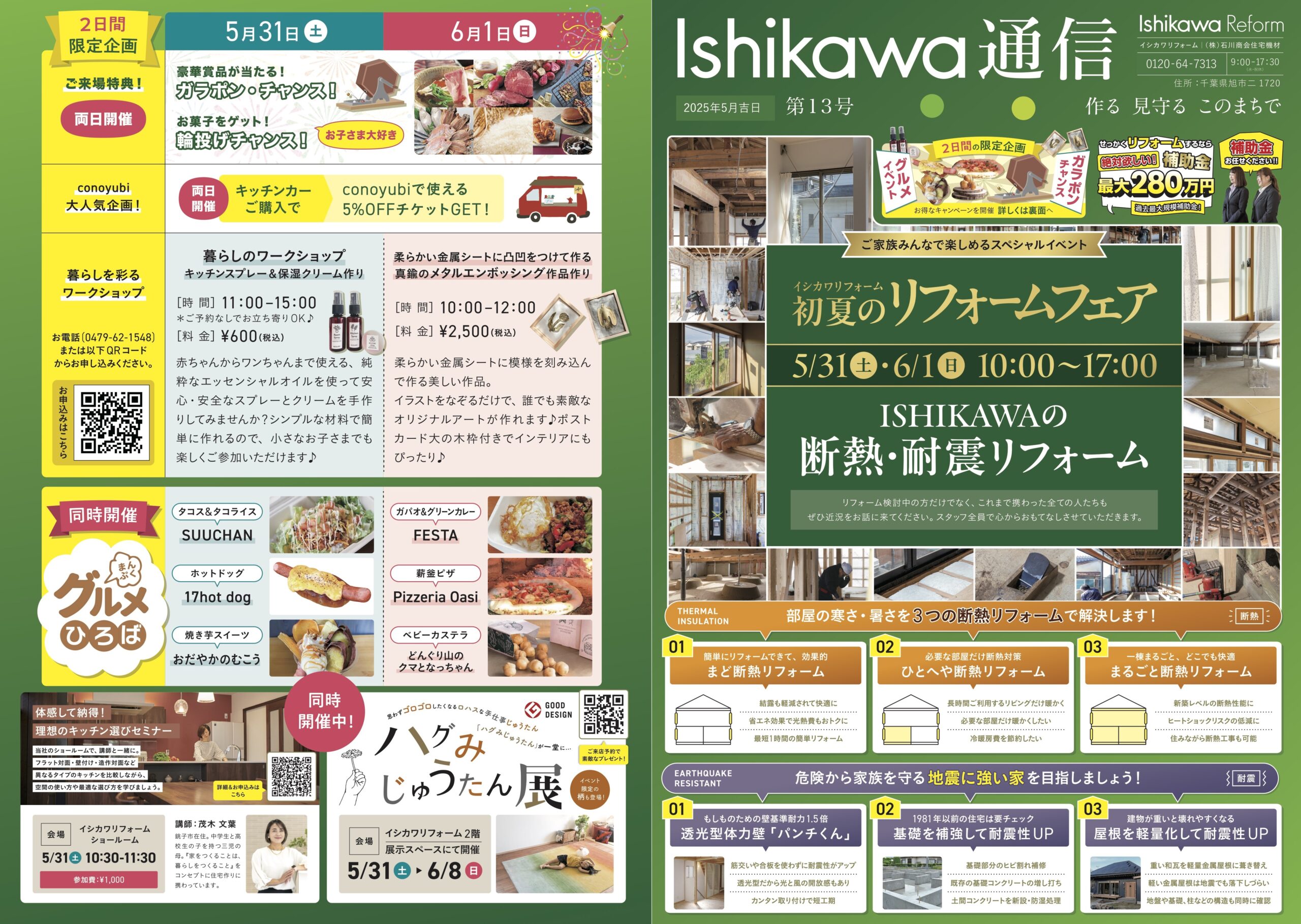 5/31(土)・6/1(日)開催のイベント情報や、スタッフのおすすめ観光地、安心価格のリフォーム設備紹介など、暮らしがちょっと楽しくなる内容を盛りだくさんでお届けしています。