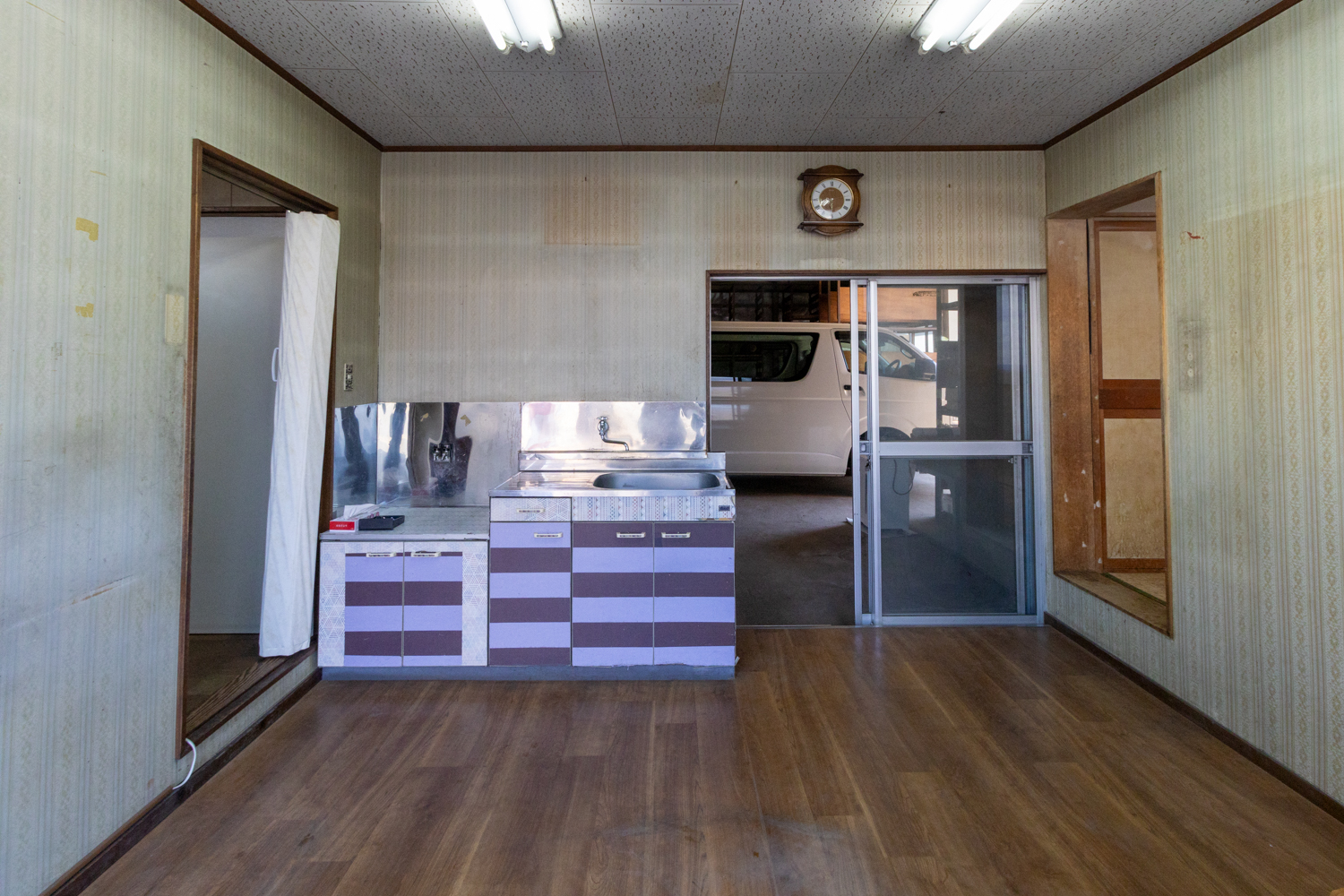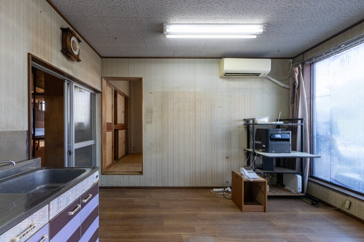 年季の入ったキッチンと暗い印象の室内が、