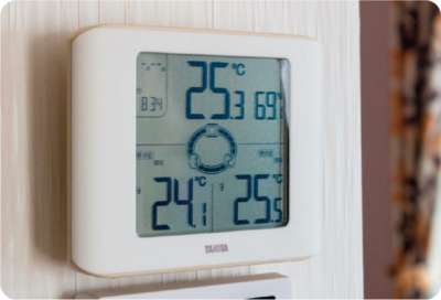 以前はリビングと浴室で10度以上あった温度差は、見事に解消して快適な環境に。 ※リビング・浴室・2階寝室の3箇所を同時に測れる温度計で検温。