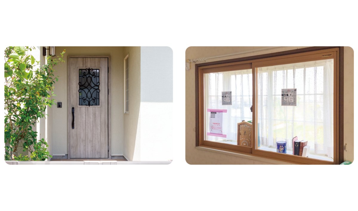 特に熱が逃げやすい家中の窓を、ペアガラスの断熱サッシに交換。 玄関ドアも断熱タイプに交換しました。
