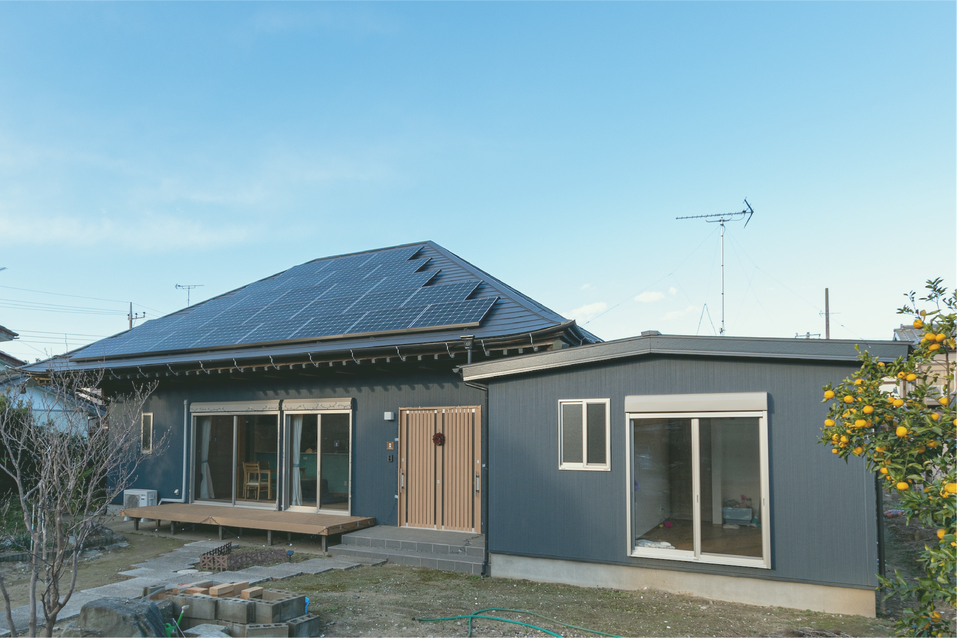重かった和瓦を撤去して、軽量タイプの金属屋根に葺き替え。外もお手入れ簡単なサイディングに変更しました。